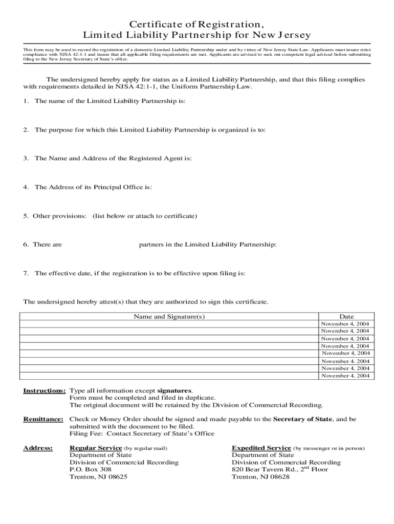 Get the free Certificate of Registration, Limited Liability Partnership for ...