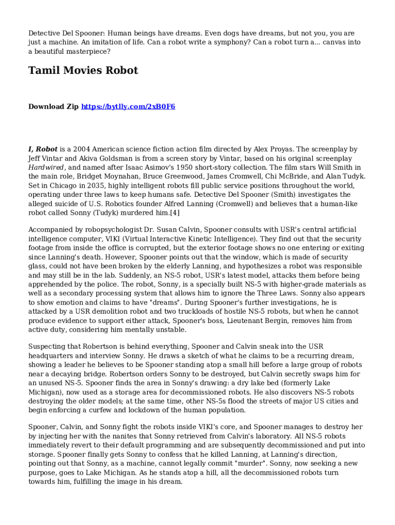 Get the free Quotation from I, RobotColumbus Metropolitan Library