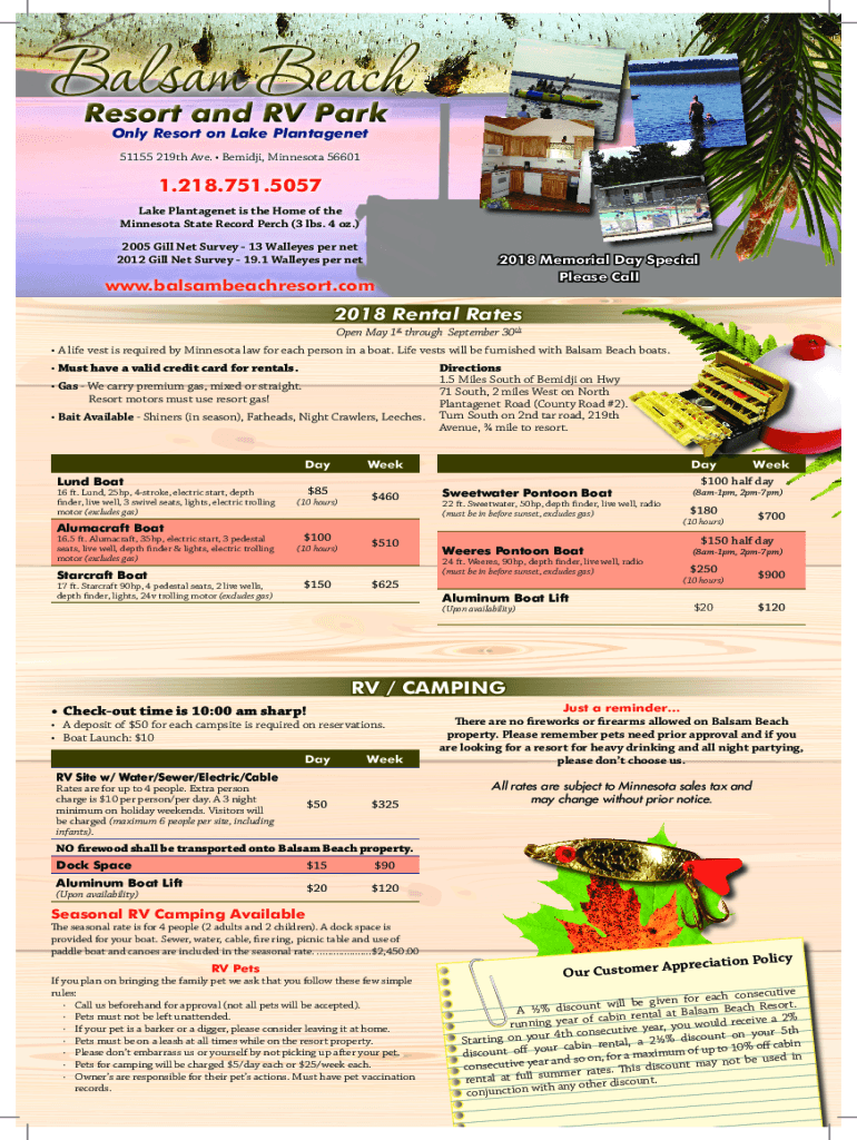 Only Resort on Lake Plantagenet 51155 219th Ave. Bemidji, Minnesota 566011.218.751.5057 Lake Plantagenet is the Home of the Minnesota State Record Perch (3 lbs. 4 oz.) 2005 Gill Net Survey 13 Walleyes