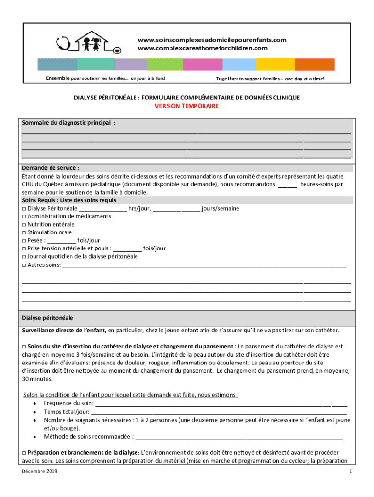 www.complexcareathomeforchildren.comEnsemble pour soutenir les familles un jour la fois!Together to support families one day at a time!DIALYSE PRITONALE