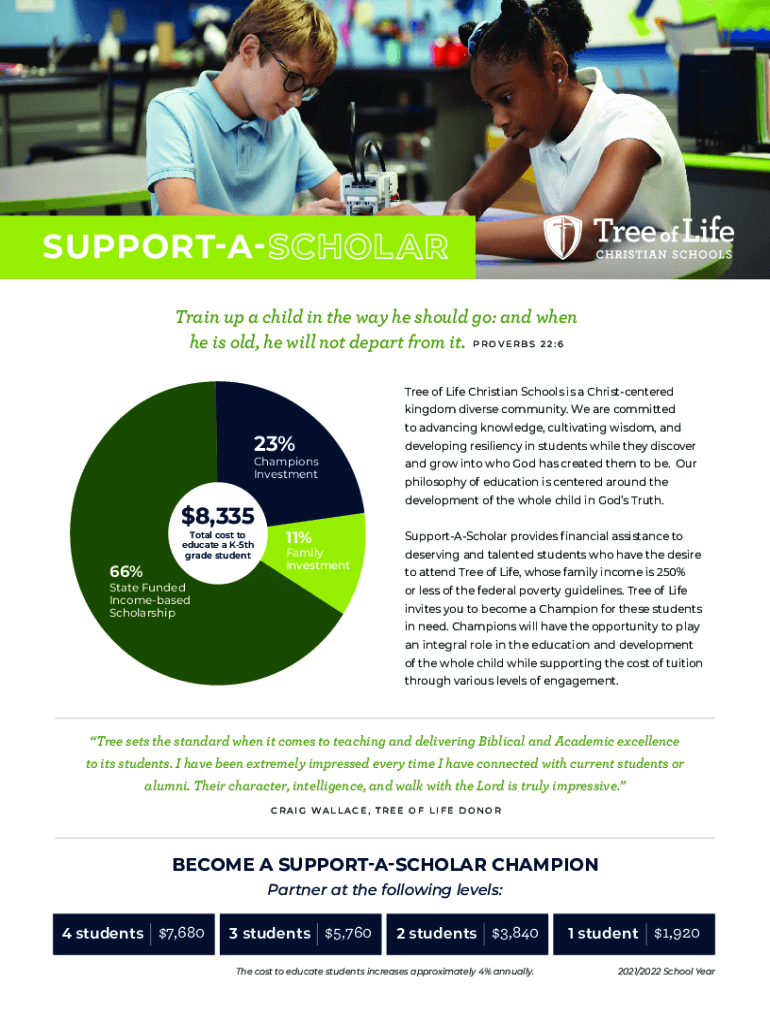 SUPPORTASCHOL AR Train up a child in the way he should go: and when he is old, he will not depart from it. P R O V E R B S 2 2 : 6 Tree of Life Christian Schools is a Christcentered kingdom diverse