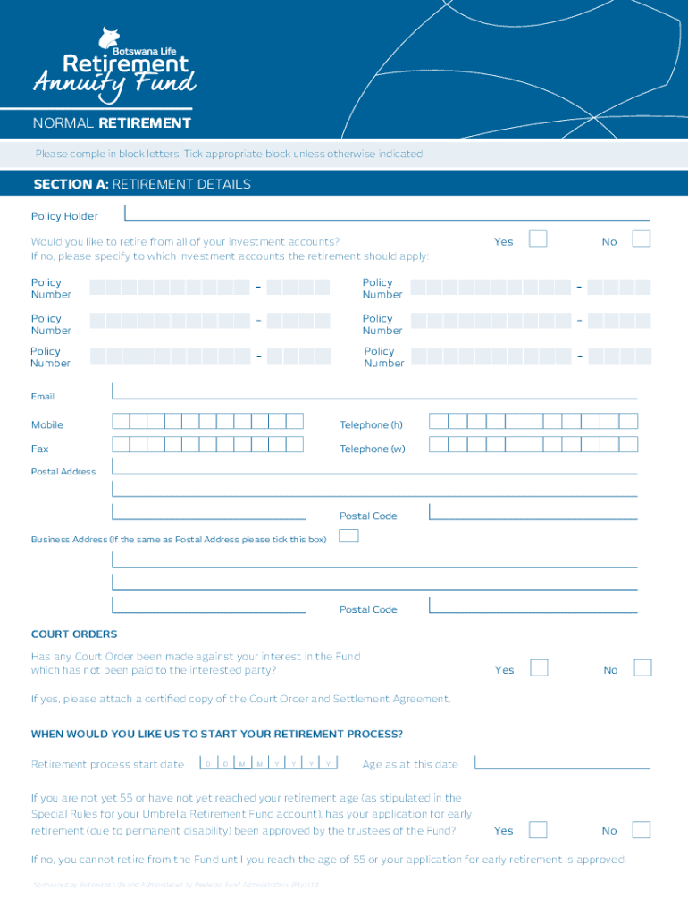 Please complex in block letters. Tick appropriate block unless otherwise indicatedSECTION A: RETIREMENT DETAILS