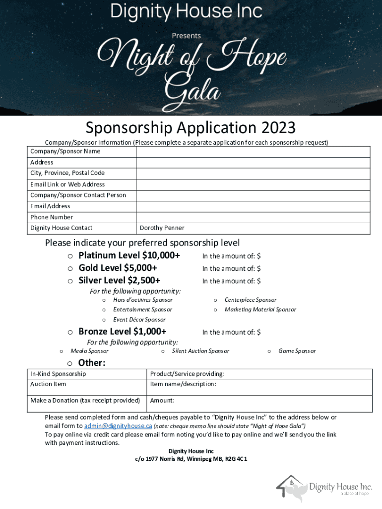 Sponsorship Application 2023 Company/Sponsor Information (Please complete a separate application for each sponsorship request) Company/Sponsor Name Address City, Province, Postal Code Email Link or
