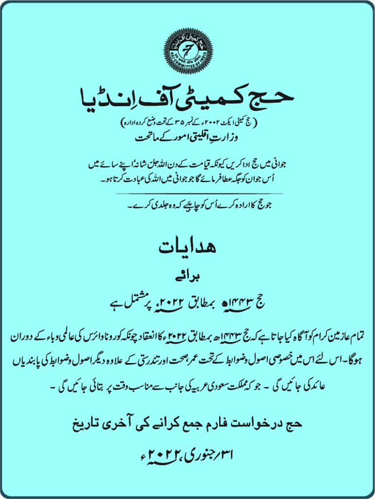 GUIDELINES FOR HAJ 1443 (H) 2022 (C.E.) (SOLEMN DECLARATION AND UNDERTAKING)for General Category I, Mr./Mrs./Miss,S/W/D/o. ___ solemnly declare on oath in the name of ALLAH that : 1. 2.3.4.___, Indian