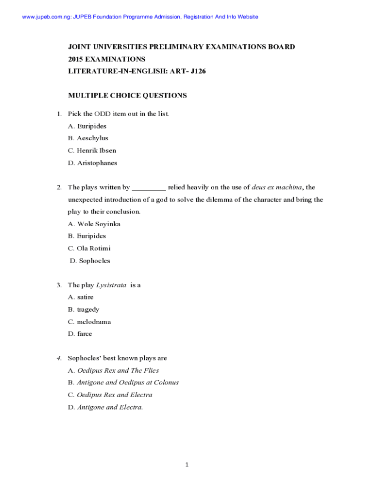 Joint Universities Preliminary Examinations is not the form you're looking for?Search for another form here.
