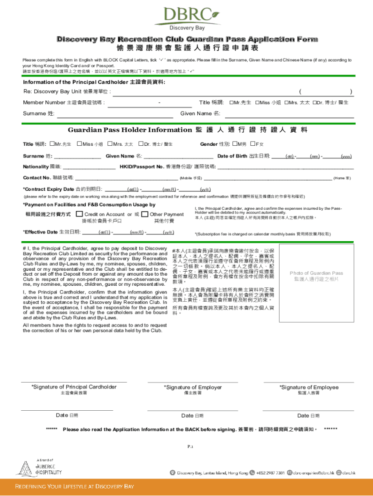 Get the free Discovery Bay Recreation Club Guardian Pass Application ...