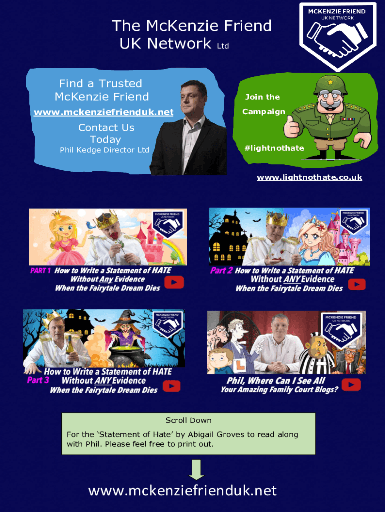The McKenzie Friend UK Network Ltd Find a Trusted McKenzie FriendJoin thewww.mckenziefrienduk.netCampaignContact Us Today#lightnothatePhil Kedge Director Ltdwww.lightnothate.co.ukScroll Down For the