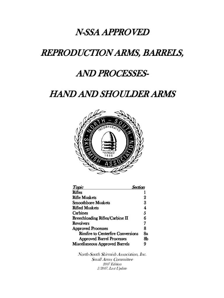 Individuals who participate in competitive shooting events organized by the National Skirmish Association and adhere to their rules and regulations will need N-SSA approved reproduction arms.