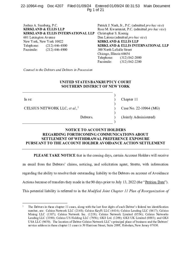 2210964mgDoc 4207Filed 01/09/24 Entered 01/09/24 00:31:53 Pg 1 of 21Joshua A. Sussberg, P.C. KIRKLAND & ELLIS LLP KIRKLAND & ELLIS INTERNATIONAL LLP 601 Lexington Avenue New York, New York 10022 Telephone:
