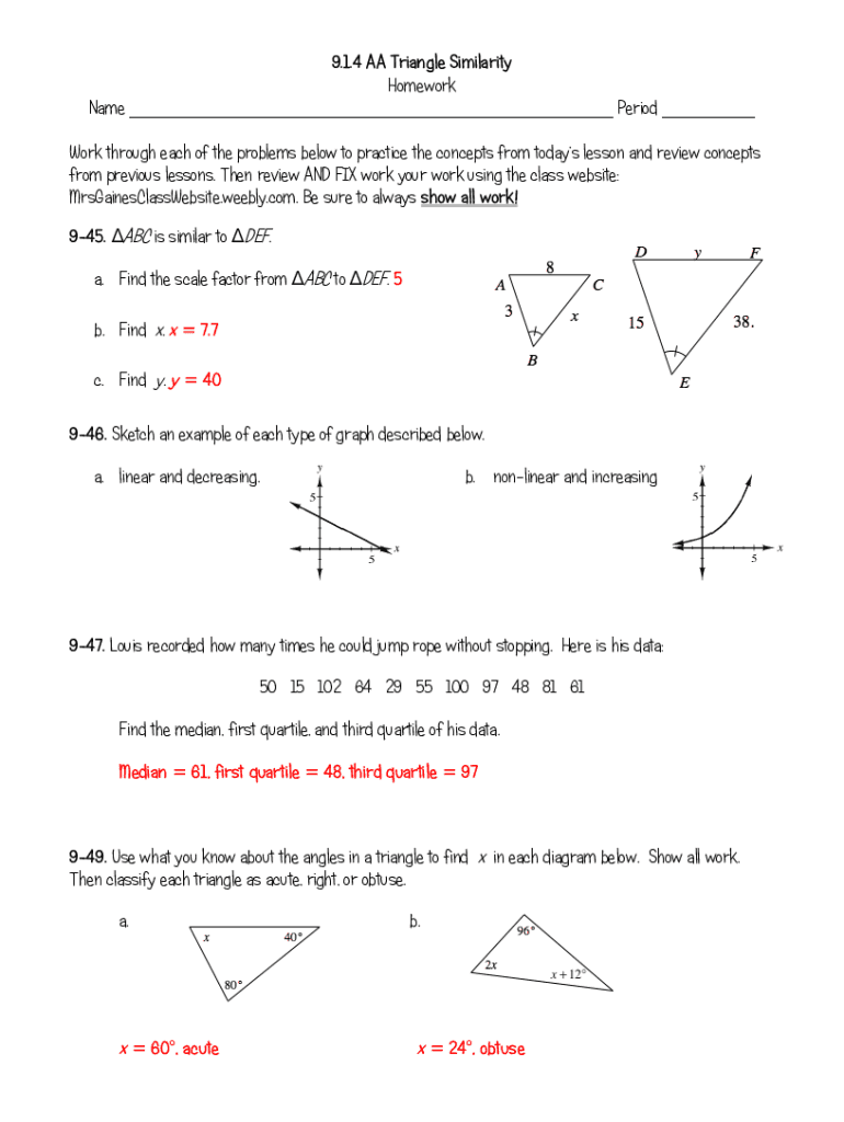 9.1.4 AA Triangle Similarity Homework Name ___ Period ___ Work through each of the problems below to practice the concepts from todays lesson and review concepts from previous lessons. Then review