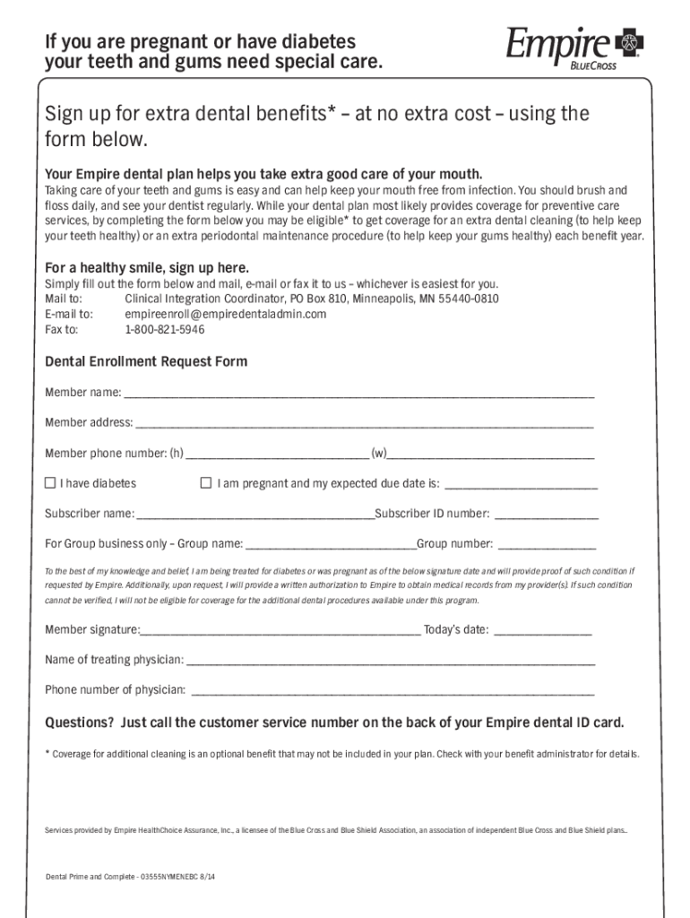 Form If title are pregnant or have diabetes Form Sub Title your teeth and gums need special care. Sign up for extra dental benefits* at no extra cost using the form below. Your Empire dental plan