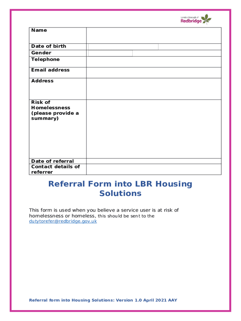 What is Housing Benefit Referral into Housing Solutions Form?