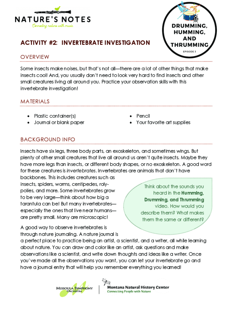 ACTIVITY #2: INVERTEBRATE INVESTIGATION OVERVIEW Some insects make noises, but thats not allthere are a lot of other things that make insects cool! And, you usually dont need to look very hard to
