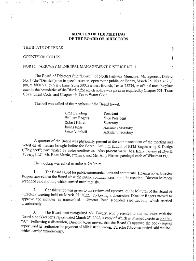 Get the free North Parkway Municipal Management District No. 1 ...