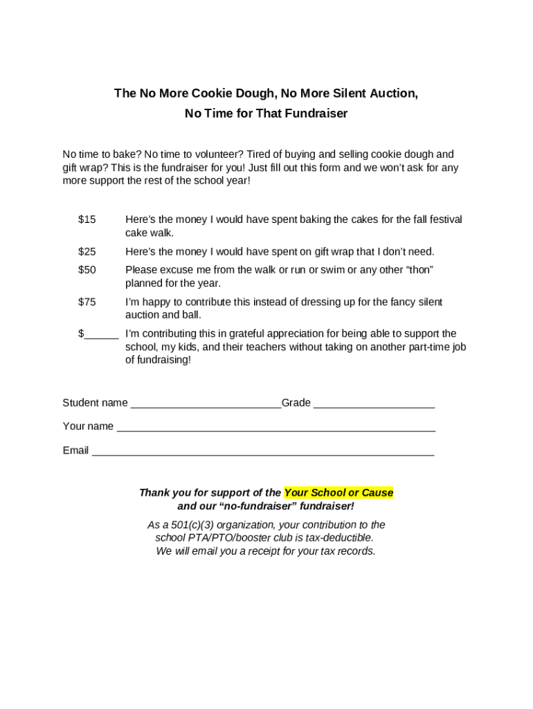What is No more cookie dough: Eco-friendly fundraisers for kids Form?