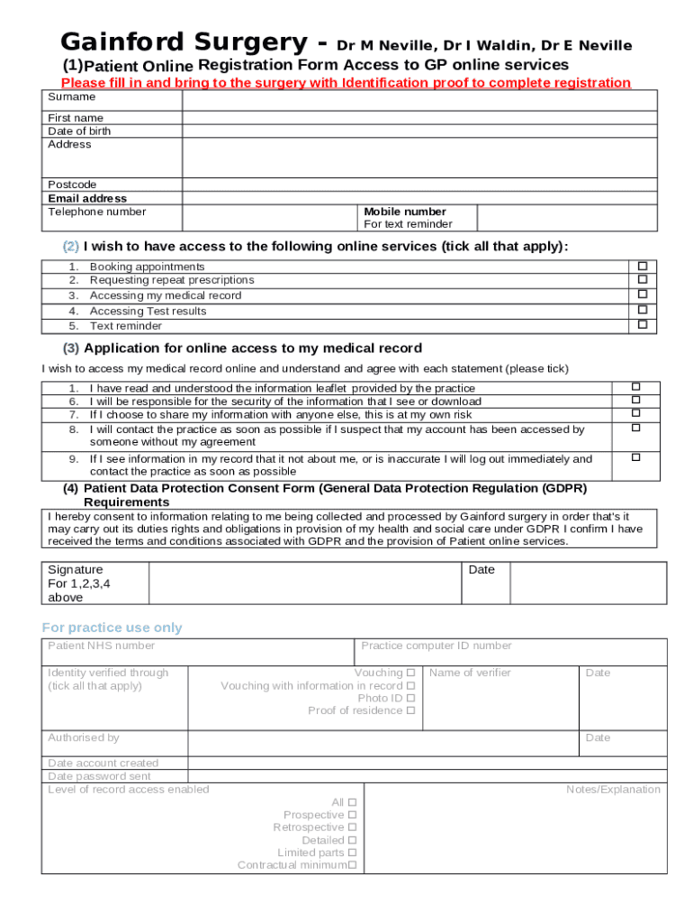 Instructions for the form REGISTERING PATIENTS FOR GP ONLINE SERVICES