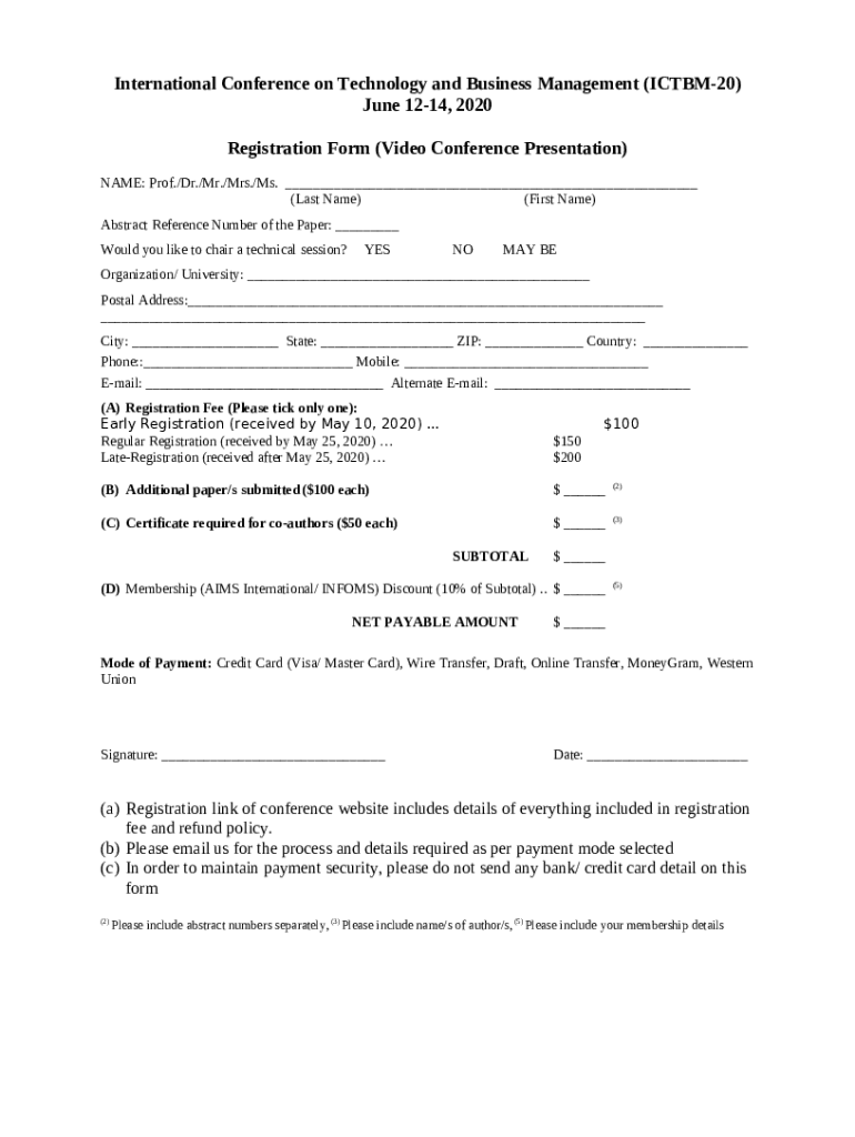 How to fill Registration for Video Conference Presentation - ICTBM word template