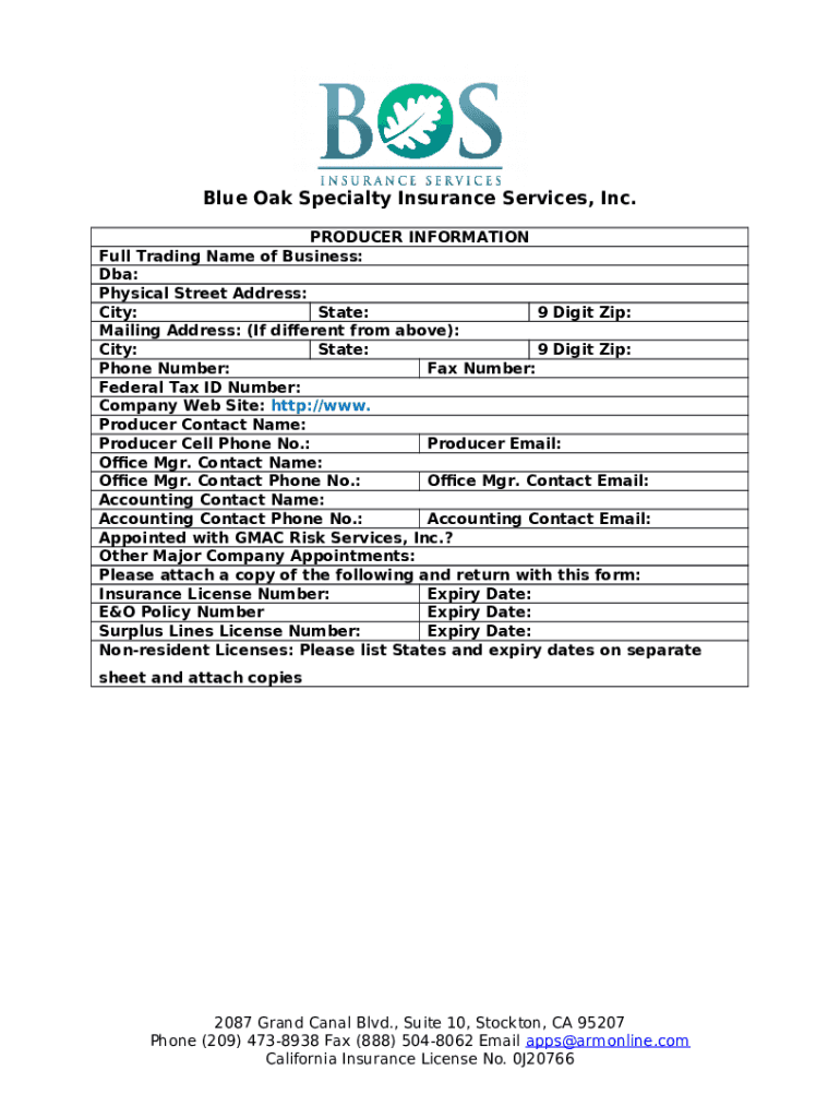 How to fill Blue Oak Specialty Insurance Services, Inc. word template