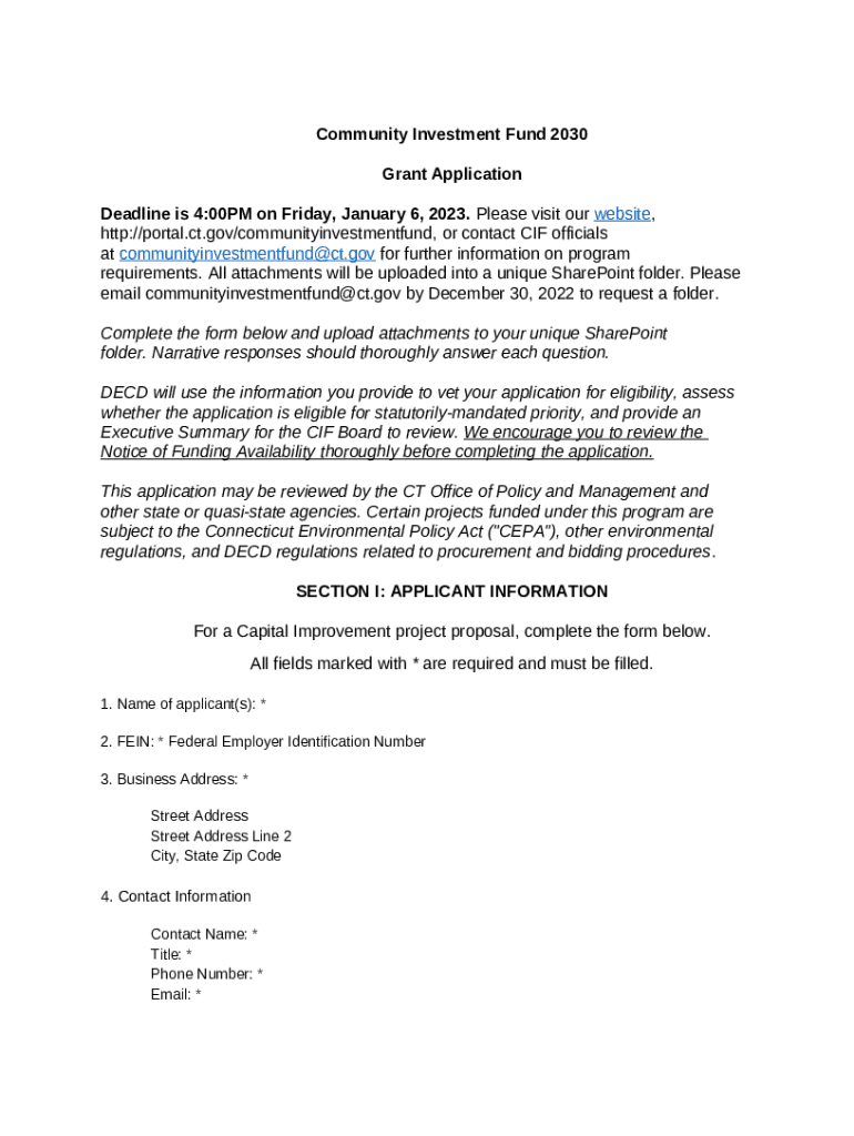 What is COMMUNITY INVESTMENT FUND 2030 Grant Application Form?
