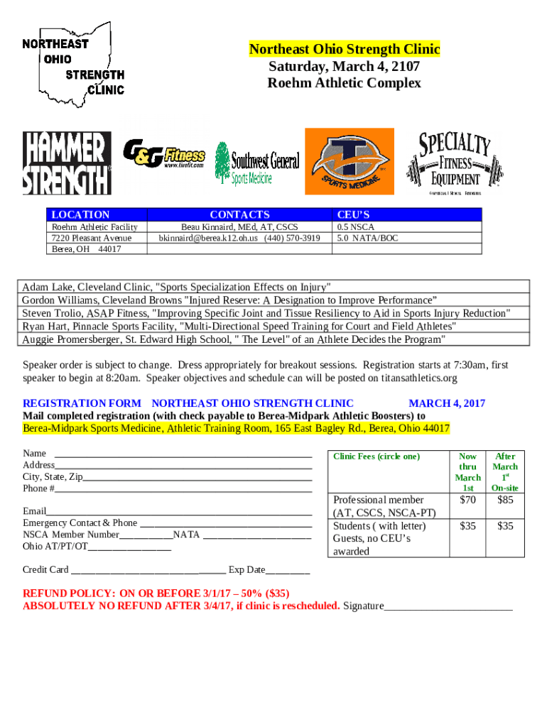 NORTHEAST OHIO STRENGTH CLINIC Roehm Athletic ... template instructions