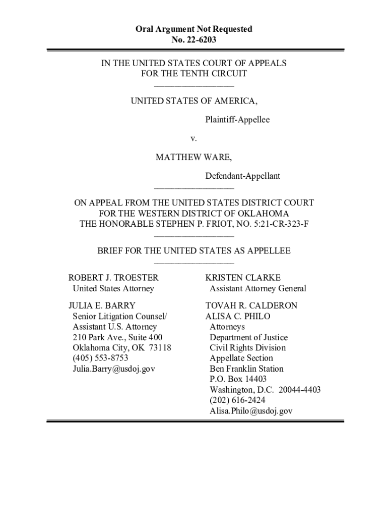 Get the free United States v. Ware. Brief as Appellee