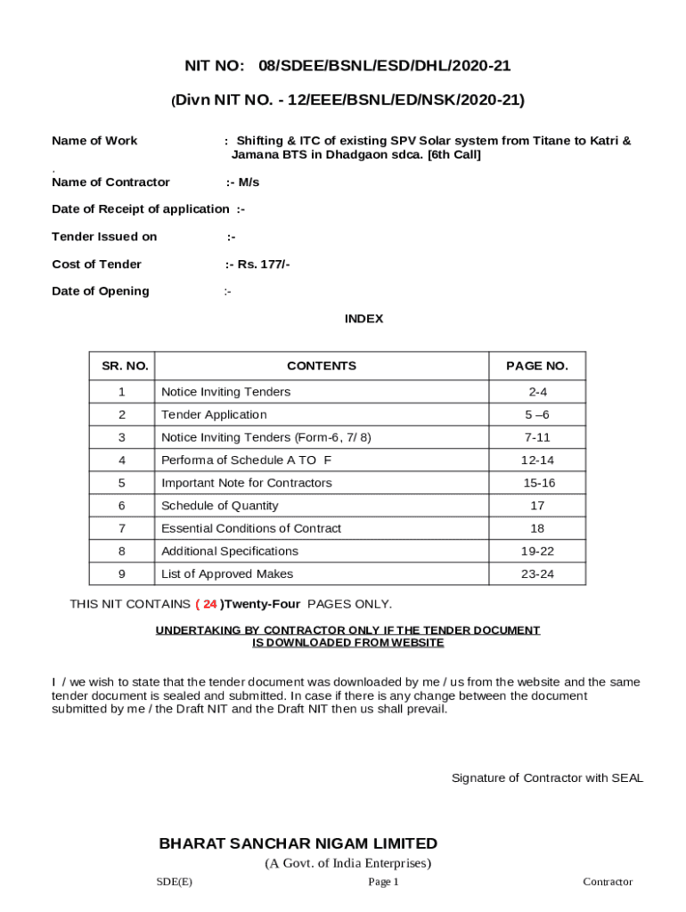 Instructions for the form Name of Work:Shifting & ITC of existing SPV Solar system from Titane to Katri & Jamana BTS in Dhadgaon sdca