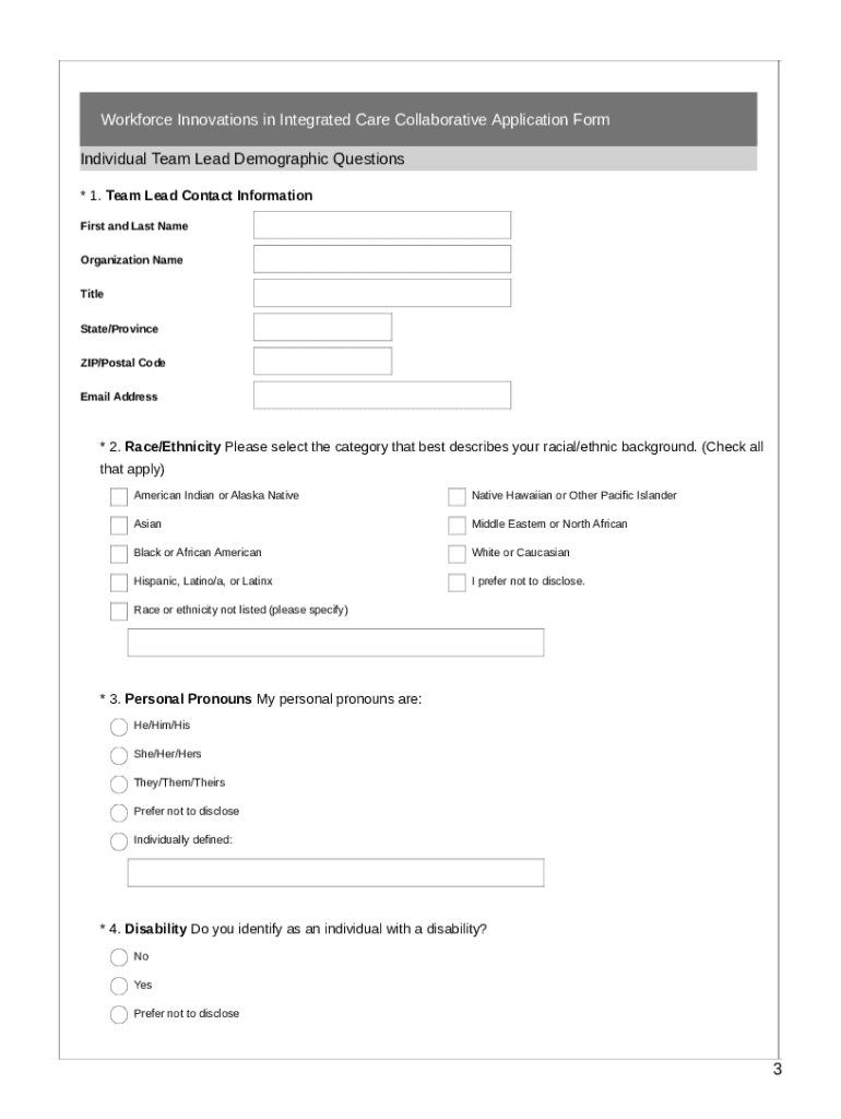 Workforce Innovations in Integrated Care Collaborative Application Form Background & Introduction DETAILS As the impacts of the COVID-19 pandemic continue to unfold, new research points to an increased
