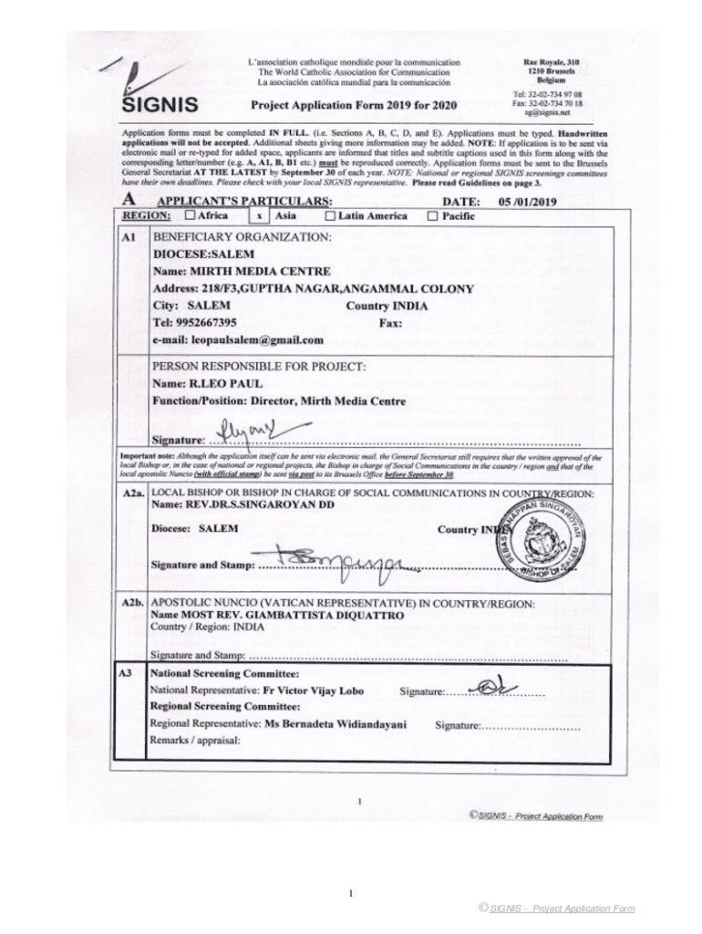 1SIGNIS Project Application FormLassociation catholique mondiale pour la communication The World Catholic Association for Communication La asociacin catlica mundial para la comunicacinRue Royale,