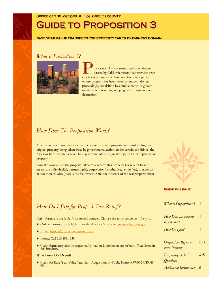 BASE YEAR VALUE TRANSFERS FOR PROPERTY TAKEN BY EMINENT DOMAINWhat is Proposition 3? Proposition 3 is a constitutional amendment