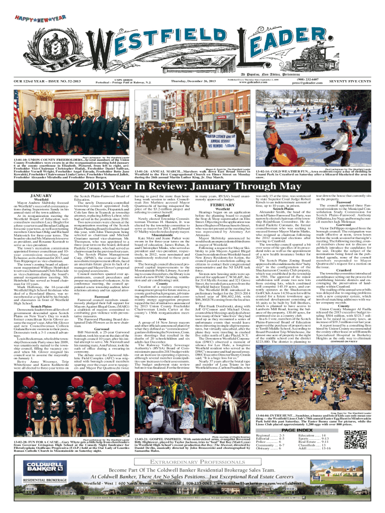 Periodical Postage Paid at Rah way, N.J. Thursday, December 26, 2013(908) 2324407