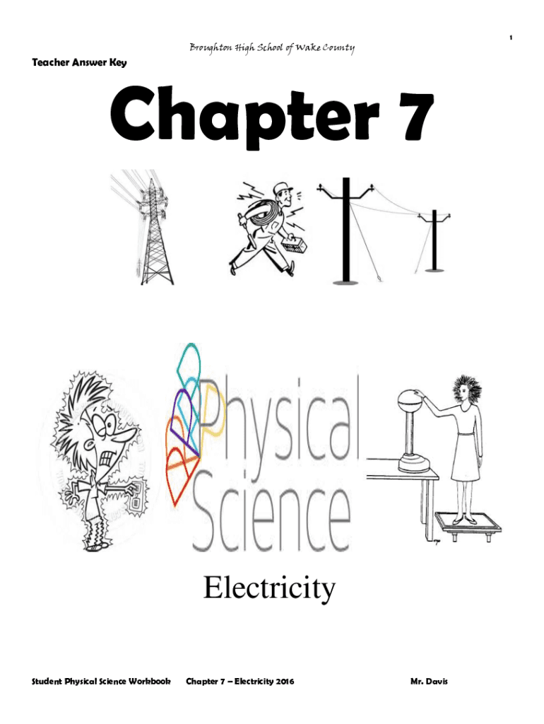 1Broughton High School of Wake CountyTeacher Answer KeyChapter 7Electricity Student Physical Science WorkbookChapter 7 Electricity 2016Mr. Davis2Broughton High School of Wake CountyPhysical Science