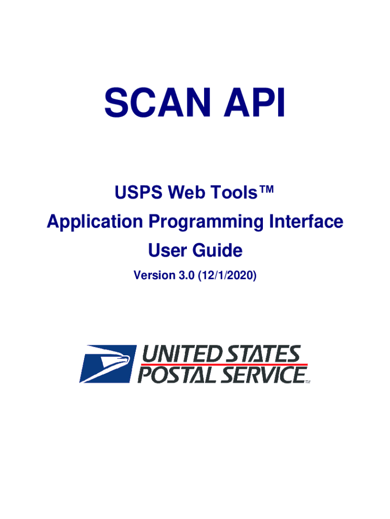 SCAN API USPS Web Tools Application Programming Interface User Guide Version 3.0 (12/1/2020)USPS Web Tools User GuideTable of Contents 1.0Introduction ................................................................................................................................