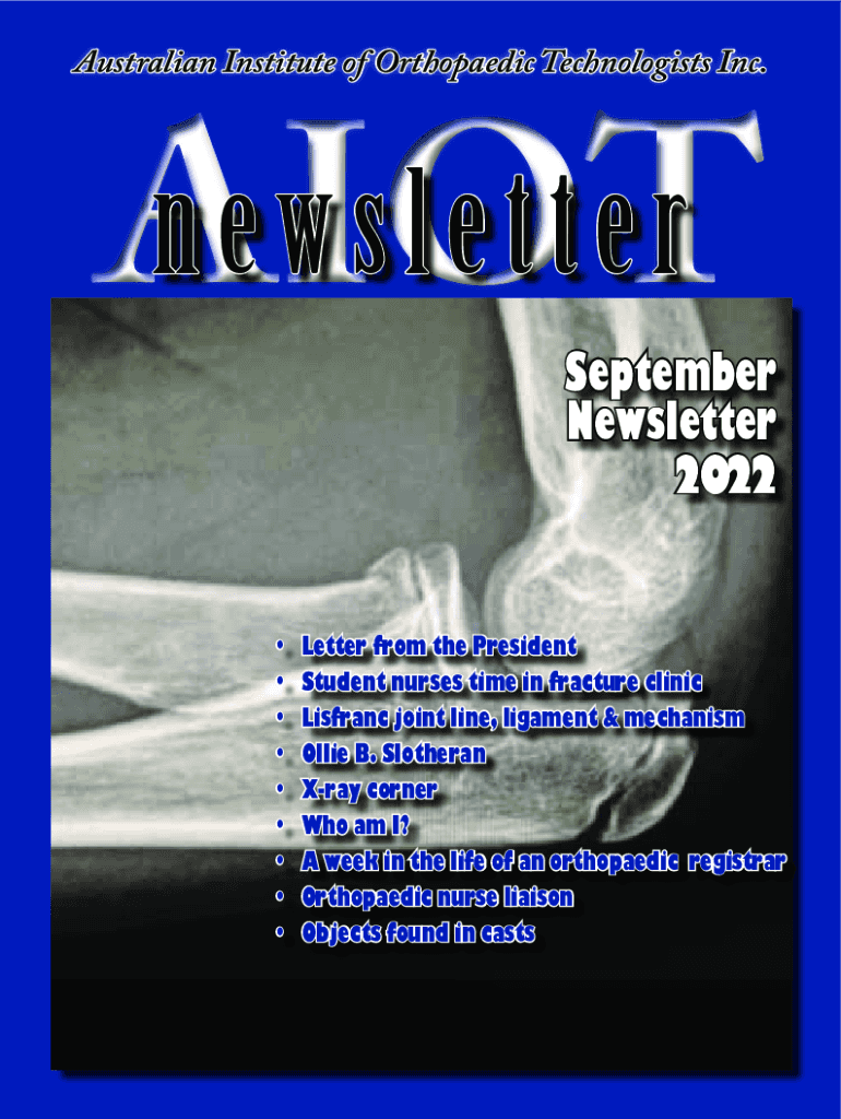 AIOT September 2022 NewsletterAustralian Institute of Orthopaedic Technologists Inc.newsletter AIOTSeptemberNewsletter 2022Letter from the President Student nurses time in fracture clinic Lisfranc
