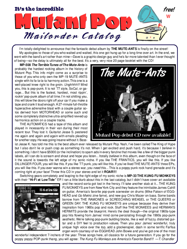 Its the incredibleMutant Pop Mailorder Catalogfree! WIm totally delighted to announce that the fantastic debut album by THE MUTEANTS is finally on the street! My apologies to those of you who waited