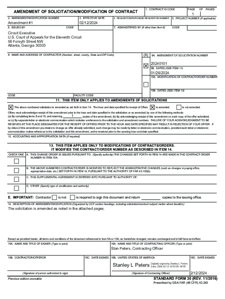 AMENDMENT OF SOLICITATION/MODIFICATION OF CONTRACT 2. AMENDMENT/MODIFICATION NUMBER3. EFFECTIVE DATEAmendment #1PAGE1. CONTRACT ID CODEOFPAGES14. REQUISITION/PURCHASE REQUISITION NUMBER5. PROJECT