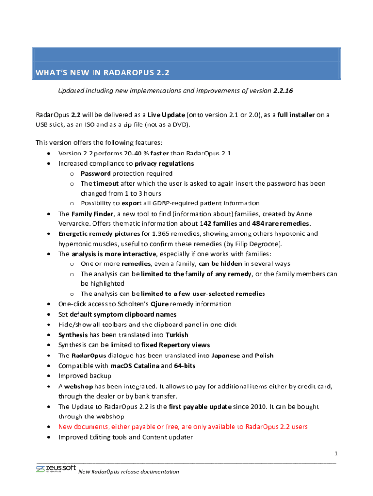 WHATS NEW IN RADAROPUS 2.2 Updated including new implementations and improvements of version 2.2.16 RadarOpus 2.2 will be delivered as a Live Update (onto version 2.1 or 2.0), as a full installer