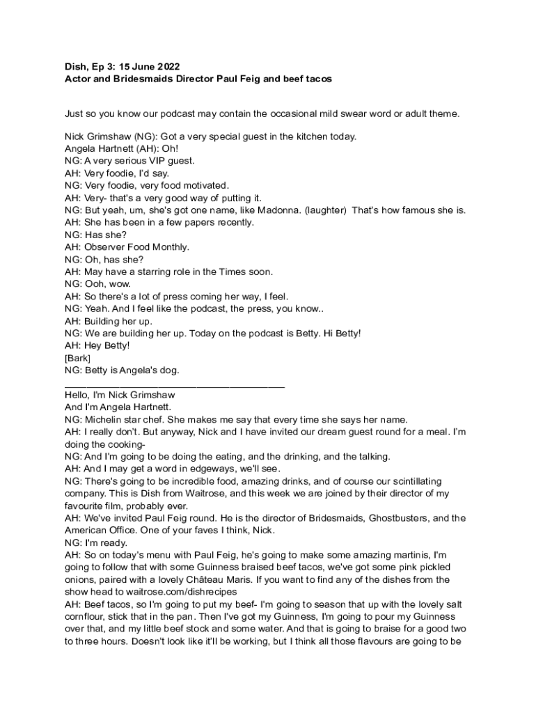Actor and Bridesmaids Director Paul Fag and beef tacosJust, so you know our podcast may contain the occasional mild swear word or adult theme.