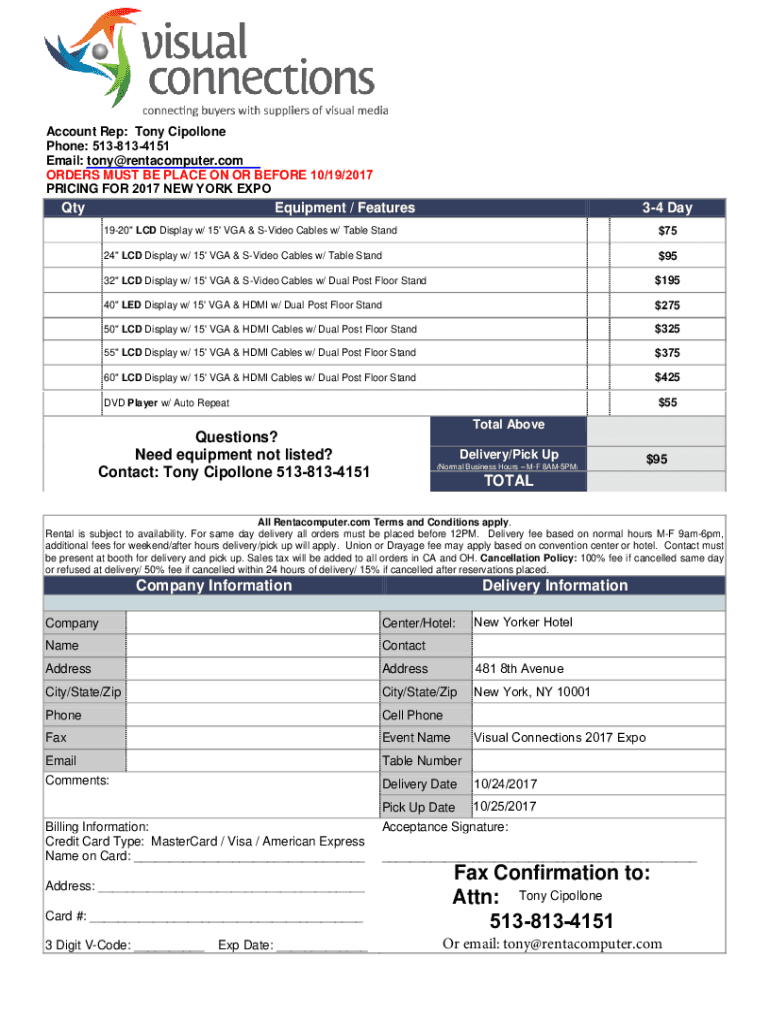 ORDERS MUST BE PLACE ON OR BEFORE 10/19/2017