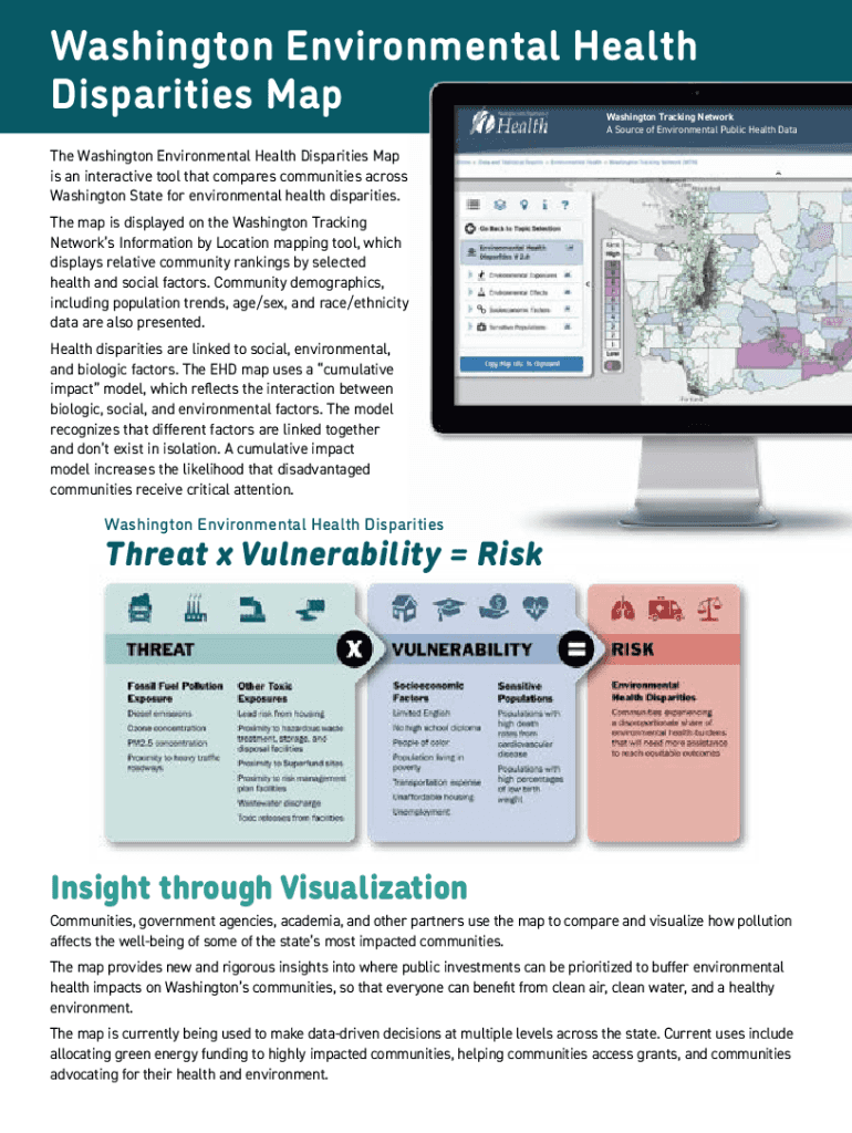 Washington Environmental Health Disparities MapWashington Tracking Network A Source of Environmental Public Health DataThe Washington Environmental Health Disparities Map is an interactive tool that