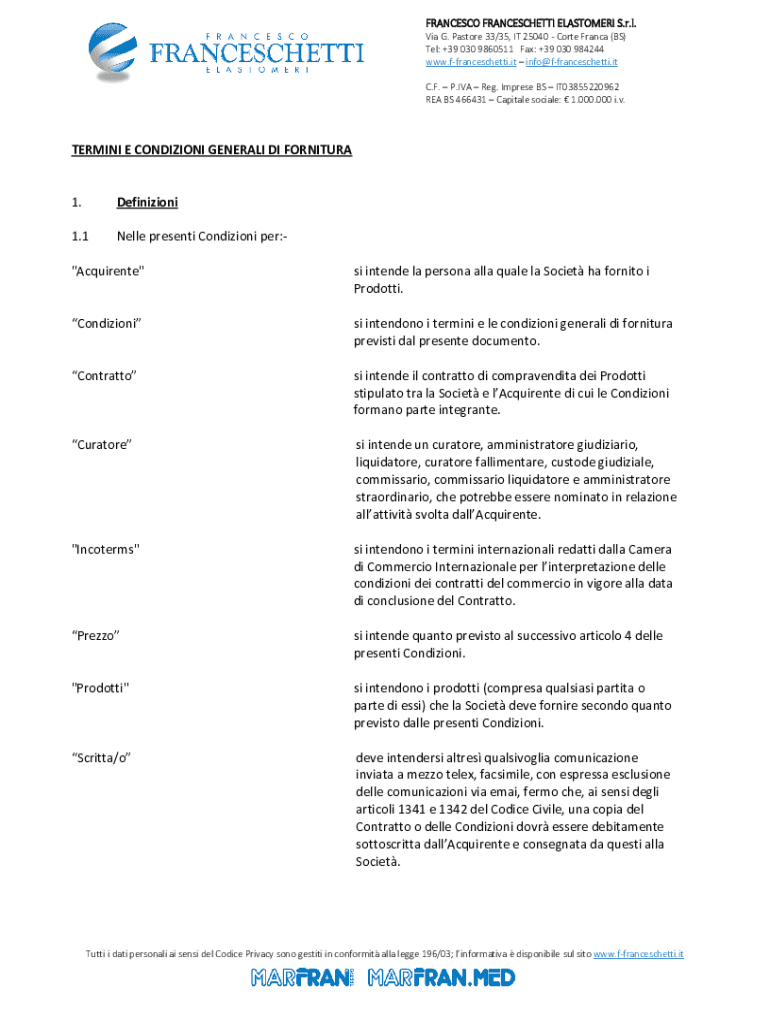 I fornitori di beni e servizi sono tenuti a compilare i termini e condizioni generali per chiarire diritti e doveri delle parti coinvolte.