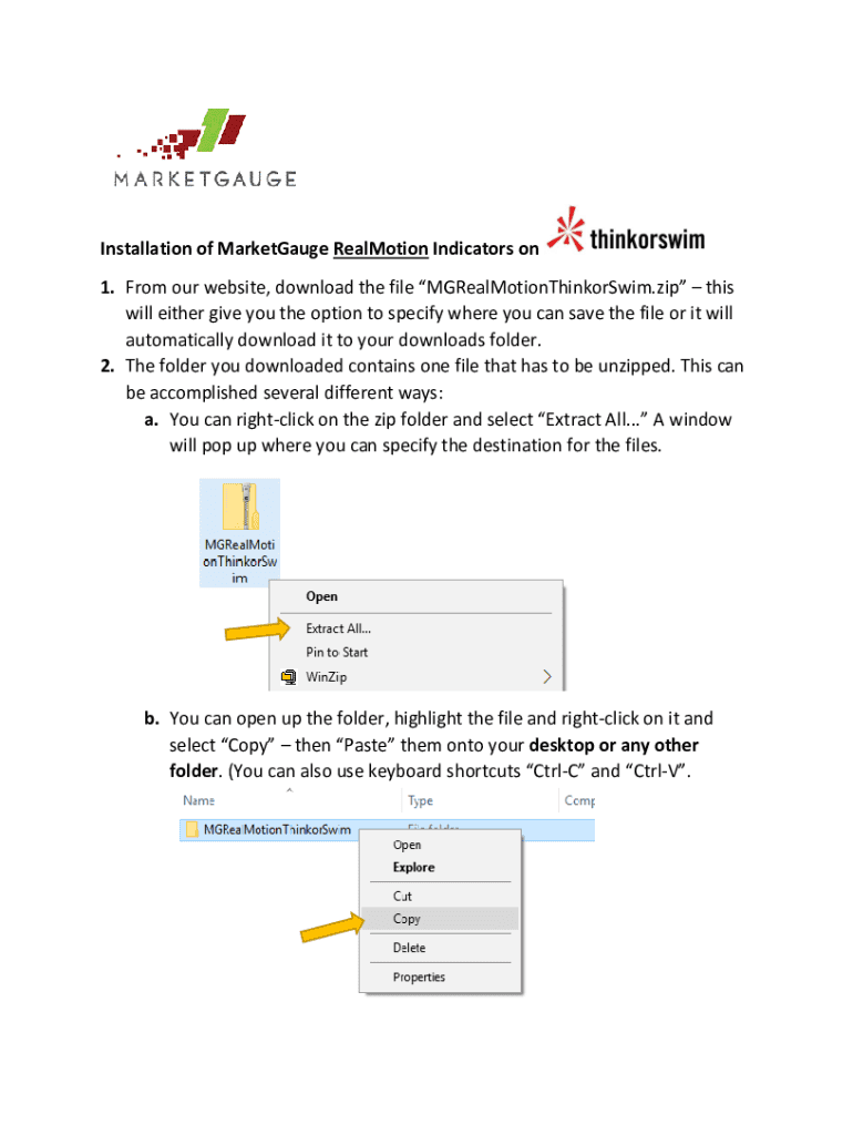 Installation of MarketGauge RealMotion Indicators on 1. From our website, download the file MGRealMotionThinkorSwim.zip this will either give you the option to specify where you can save the file