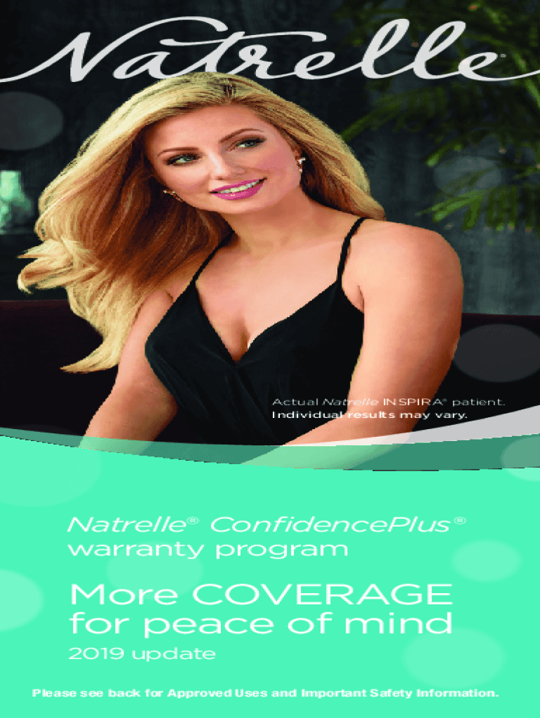 Actual Natrelle INSPIRA patient. Individual results may vary.Natrelle ConfidencePlus warranty programMore COVERAGE for peace of mind 2019 update Please see back for Approved Uses and Important Safety