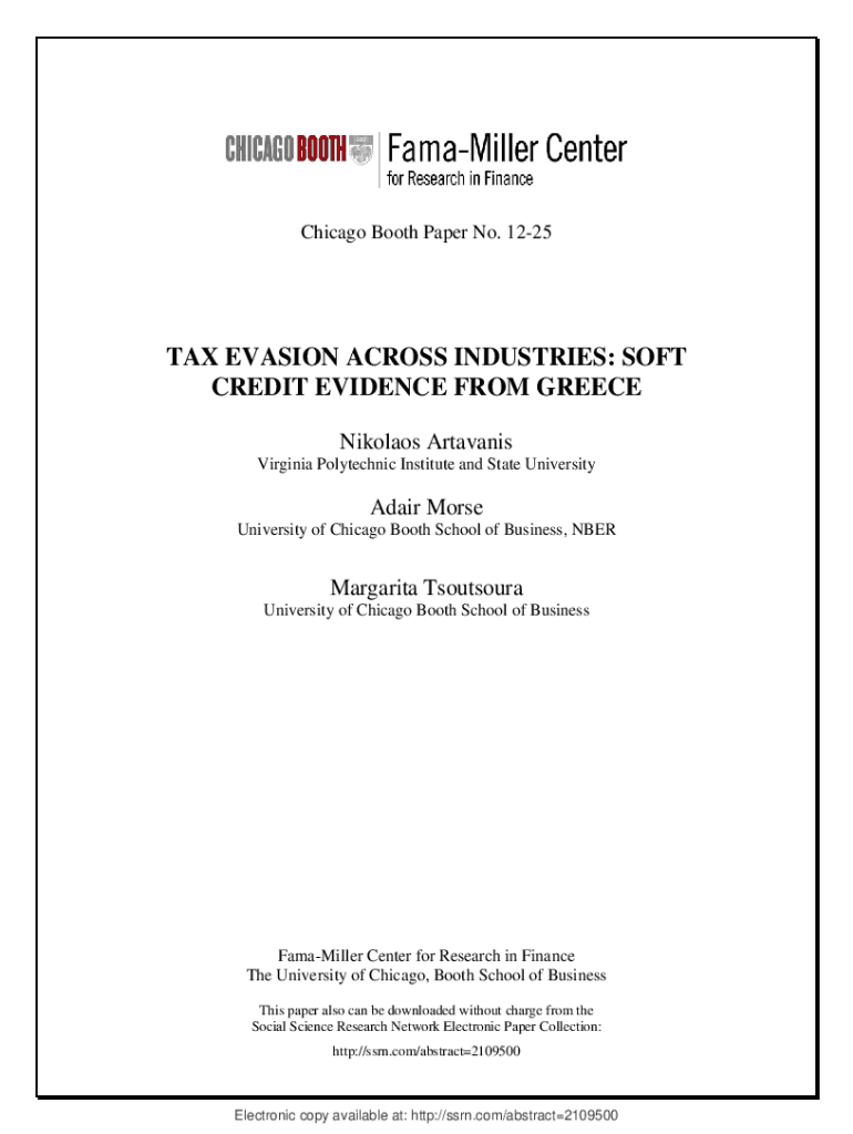 Chicago Booth Paper No. 1225TAX EVASION ACROSS INDUSTRIES: SOFT CREDIT EVIDENCE FROM GREECE Nikolaos Artavanis Virginia Polytechnic Institute and State UniversityAdair Morse University of Chicago
