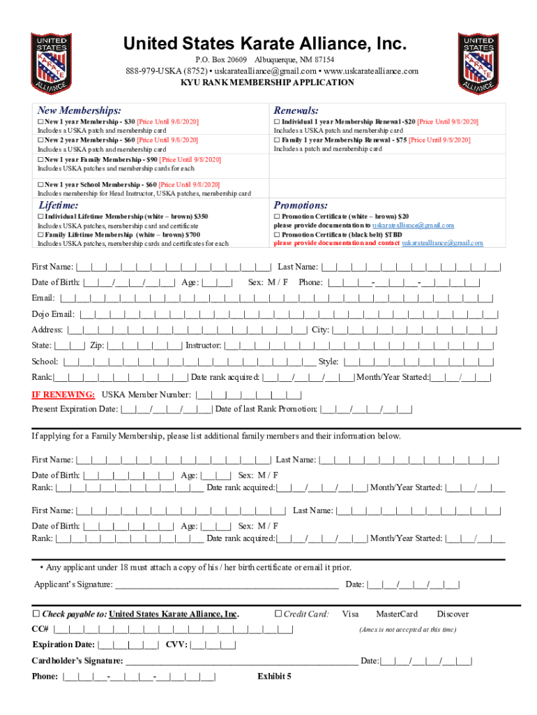 KYU RANK MEMBERSHIP Application Memberships:Renewals: