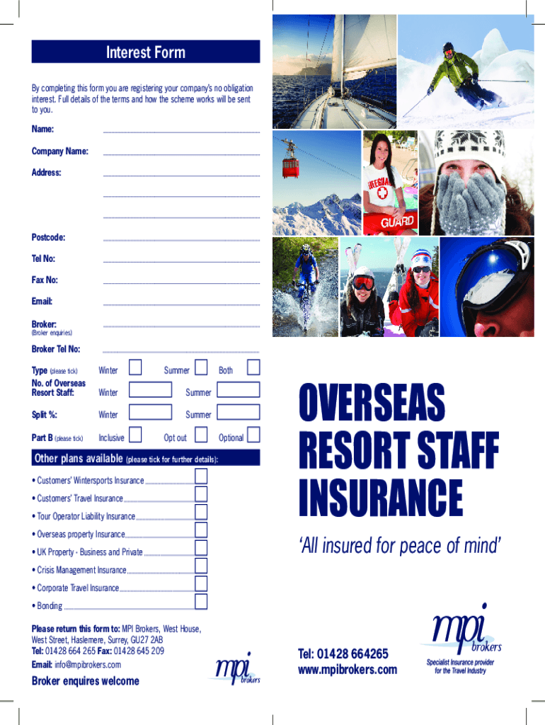 Get the free Overseas Resort Staff Claim Form 'front page'