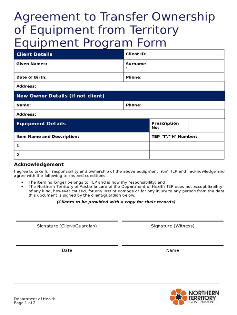 Agreement to Transfer Ownership of Equipment from Territory Equipment Program template instructions