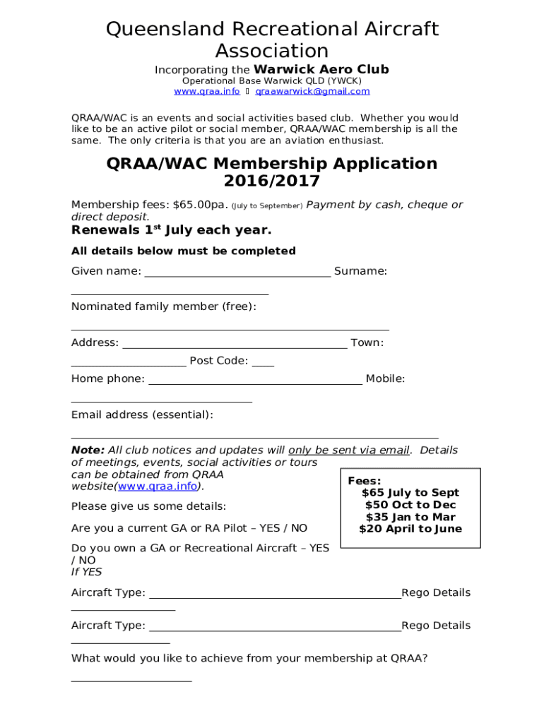 Instructions for the form QRAA/WAC is an events and social activities based club