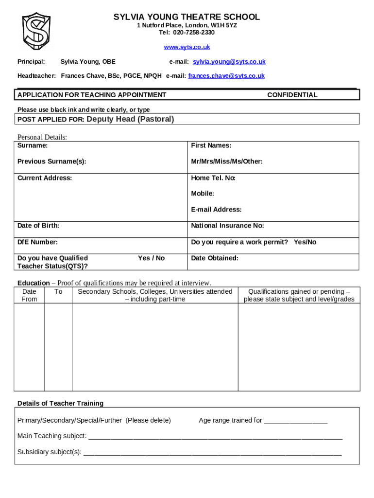 What is The Sylvia Young Theatre School - Contact Ination & More Form?