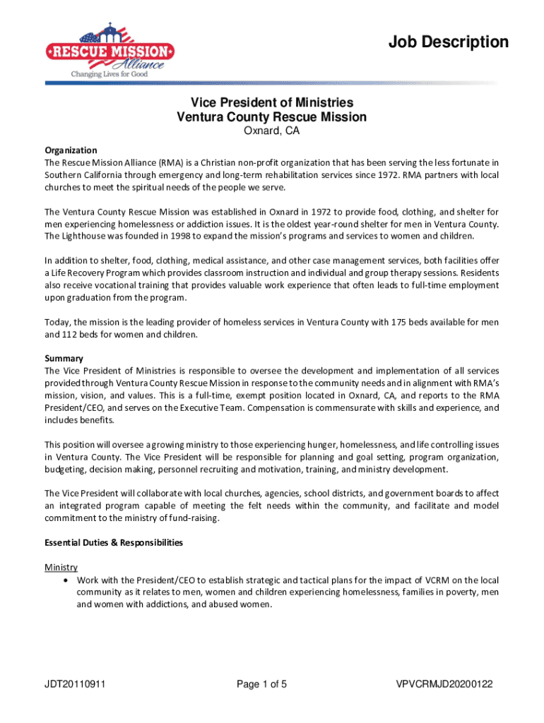 Get the free Vice President of Ministries - Ventura County Rescue Mission ...
