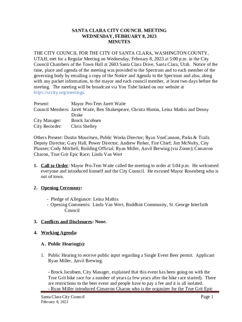 The Present:Mayor Pro-Tem Jarett Waite is a document you can get filled-out and signed for certain purpose. Then, it is furnished to the exact addressee to provide specific info of certain kinds. The completion and signing may be done in hard copy by hand or using an appropriate application like PDFfiller. Such applications help to send in any PDF or Word file online. While doing that, you can customize it depending on your needs and put an official legal e-signature. Once finished, the user sends the Present:Mayor Pro-Tem Jarett Waite to the respective recipient or several of them by mail and also fax. PDFfiller provides a feature and options that make your Word form printable. It includes a number of options when printing out. It does no matter how you will deliver a form after filling it out - physically or by email - it will always look neat and clear. In order not to create a new file from scratch every time, turn the original form as a template. Later, you will have a rewritable sample.